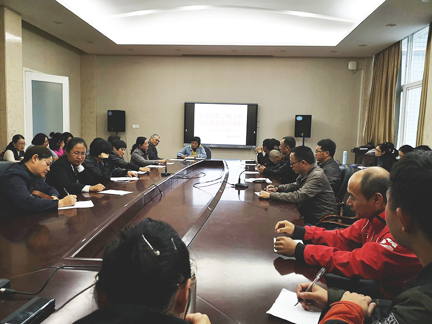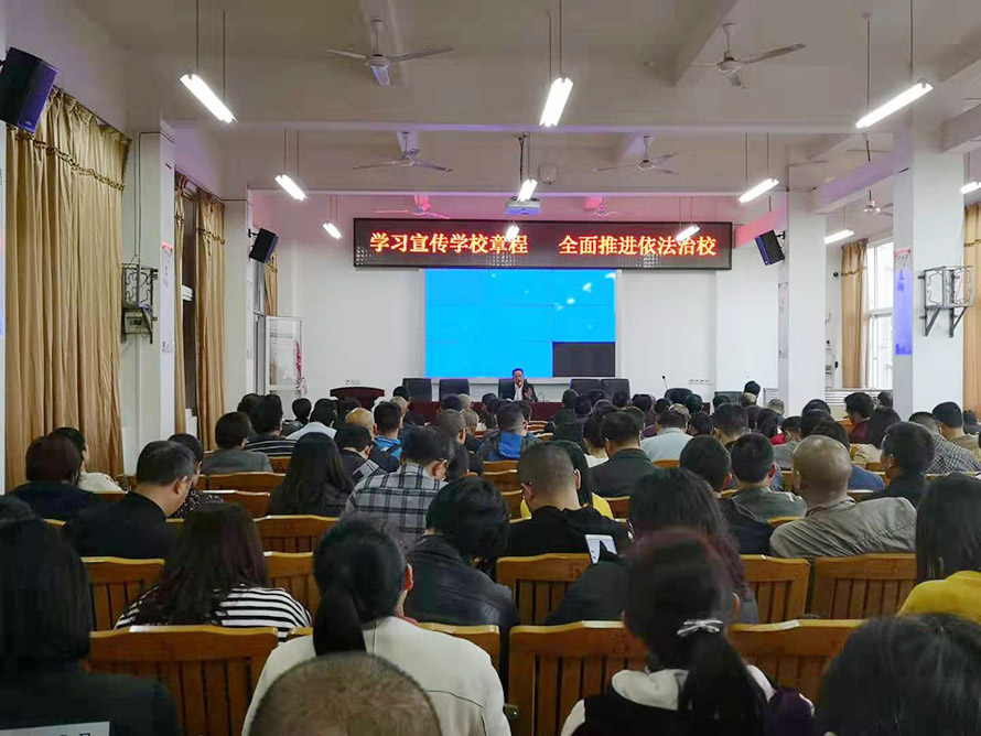 在学校集中学习中,校长赖友生同志用简洁明了的语言,深入浅出地对学校章程各条目的制定依据、结构安排、具体内容等加以说明,使全体老师对学校章程有了更加准确和清晰的认识。他表示,学校章程上承国家法律法规,下启学校规章制度,构建了学校内部治理结构,规范了学校的办学行为,是省示范性现代学校制度建设的核心内容,是促进学校发展的一种制度性保障。学习《长汀职专学校章程》并领会其内容与精神,与师生息息相关,密不可分。希望各位老师能够重视并自觉加强对于《章程》的学习,自觉贯彻落实《章程》中的各项规定,为学校发展做出贡献。