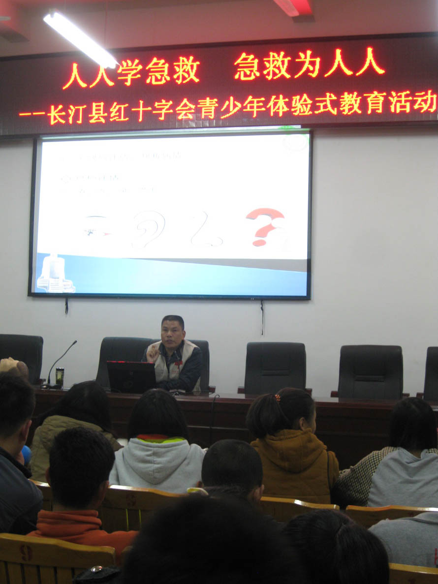 11月18日我校举行“人人学急救,急救为人人”青少年体验活动。在县红十字会的指导下,组织我校学生学习急救知识。通过系统的培训,学生基本上能够掌握创伤救护、心肺复苏、意外伤害预防、四大救护技术(止血、包扎、骨折固定、伤员搬运)等常识。通过培训,学生初步掌握了基本的急救技能,提升了学生在日常生活和灾害事故现场自救和急救的能力。活动取得良好效果。
