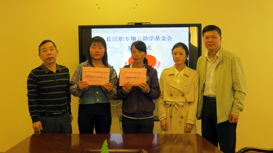 2015年11月4日上午,我校2014级刘炫同学及家长来学校领取捐资治病款项,共计21489.70元。陈腾校长、兰福荣书记、丘副校长、陈副校长及学生工作处、团委等相关人员参加了活动。