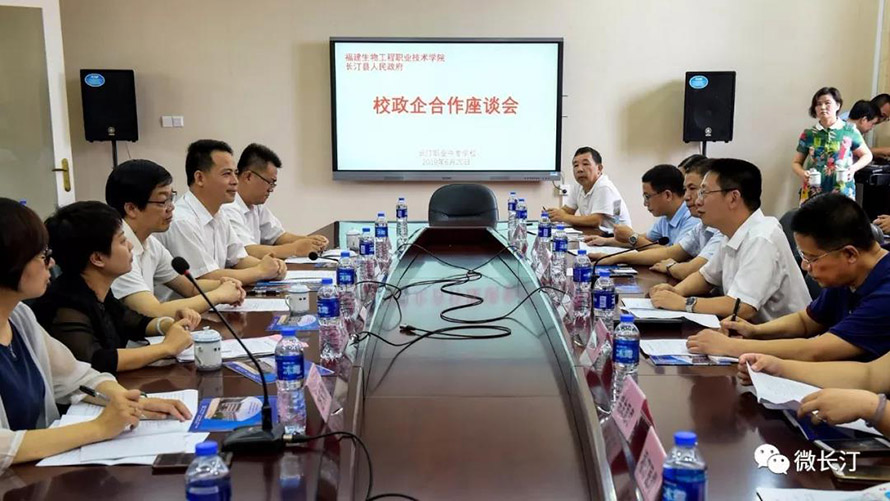 6月20日,福建生物工程职业技术学院与长汀县人民政府深化校政企合作座谈会在长汀职专举行。
