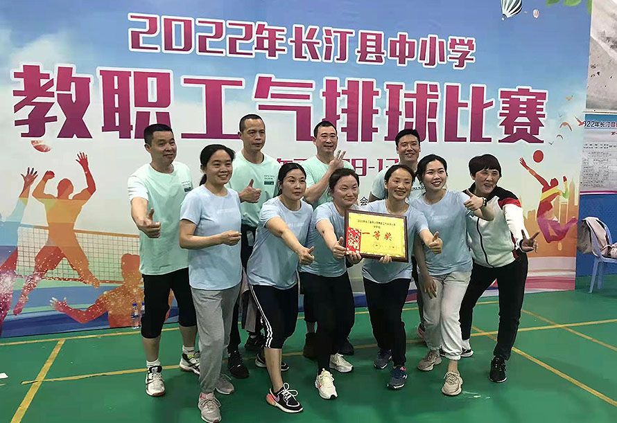 为庆祝“三八”妇女节,展示长汀县教育系统教职工昂扬向上、积极进取的精神风貌,2022年3月12—13日,由县教育局主办的长汀县中小学教职工气排球比赛在康乐美体育中心隆重举行。我校气排球代表队一路过关斩将,荣获第一名的佳绩。