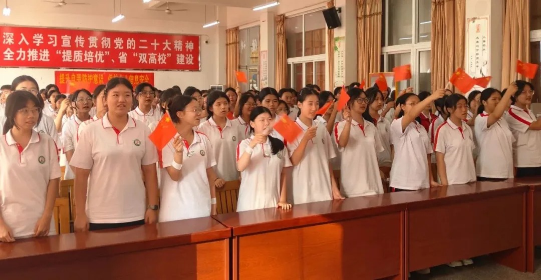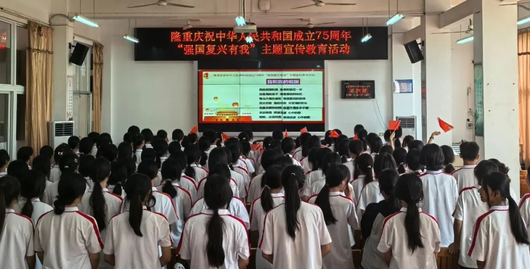 为庆祝中华人民共和国成立75周年,同学们现场合唱《我和我的祖国》,抒发心中的爱国情怀。