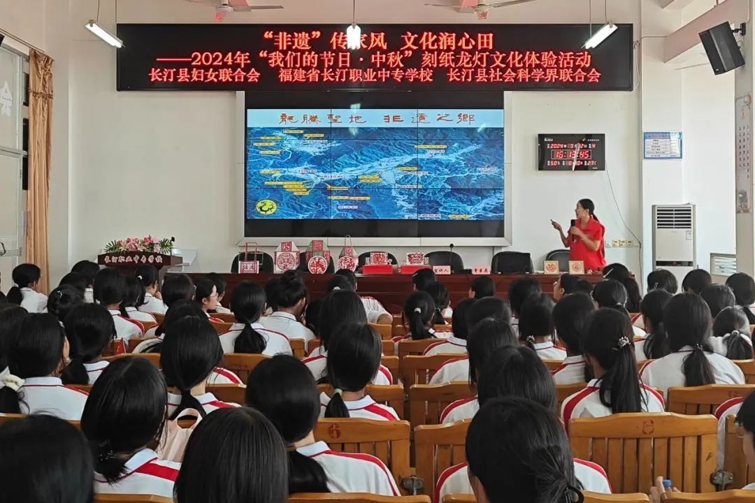 为弘扬中华民族优秀传统文化,发挥传统节日思想熏陶和文化教育功能,学校联合长汀县妇联开展“我们的节日·中秋”——“‘非遗’传家风·文化润心田”刻纸龙灯文化体验活动,100余名学生参加活动。