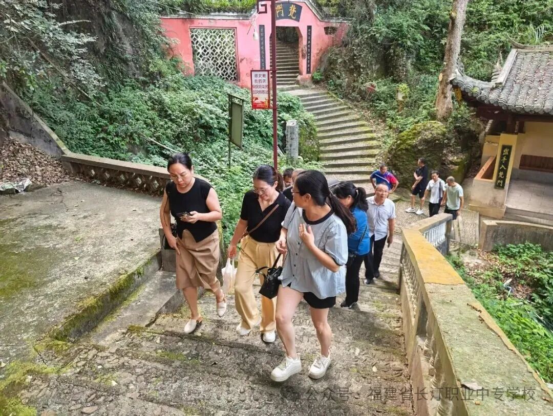 教职工们沿着朝斗岩大门往上行进,南屏山健康步道的美景也随之徐徐展开:青石铺就的栈道依山而建,时而穿梭于茂林修竹间,听鸟鸣啾啾;时而盘旋至观景平台,览汀城全景。远处汀江如带,近处层林尽染,秋日的南屏山宛如一幅灵动的山水画卷。大家或结伴而行,畅谈工作与生活;或放慢脚步,驻足拍摄美景,途中既有同事间的互助鼓励,也有对眼前风光的赞叹,欢声笑语回荡在山间。