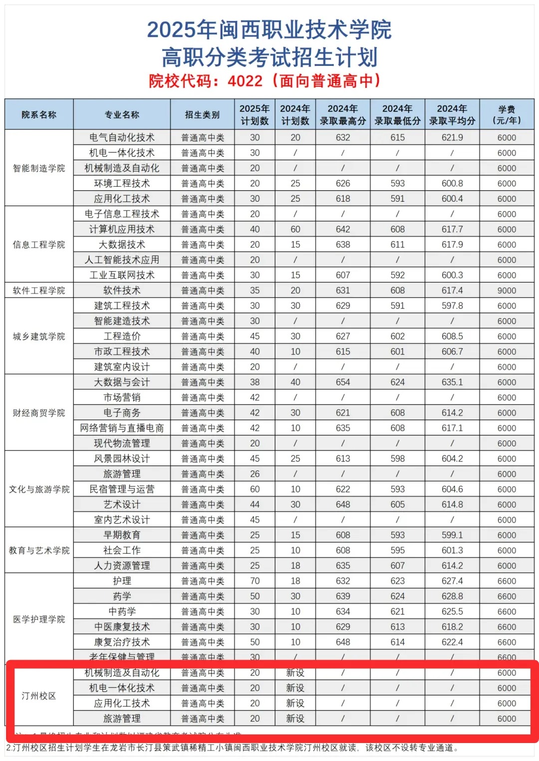2025年闽西职业技术学院汀州校区高职分类考试招生计划